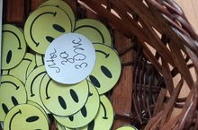 Акция "Поделись улыбкою своей". Ребята из организации "SaMoSтоятельные дети" раздавали смайлы, а также буклеты с призывом вести здоровый образ жизни