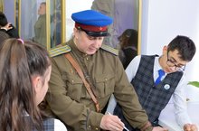 Сегодня состоялось открытие выставки «Наша Победа» Военно – историческим клубом "Цитадель", который выиграл Грант Президента РФ. В рамках этого гранта клубом проводятся передвижные стационарные выставки "Наша Победа" в школах и ВУЗах города Казани. В настоящее время выставка проводится в стенах нашей школы. Она посвящена победе нашего народа в Великой Отечественной войне. В экспозиции широко представлены личные вещи, макеты оружия, элементы экипировки и снаряжения Красной Армии и Вермахта. Одетые в униформу того времени манекены дают представление о том, как были одеты солдаты Красной Армии в предвоенный и военный периоды. Первыми познакомились с выставкой учащиеся 7а класса.