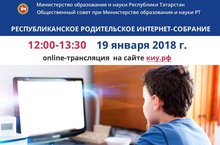 19 января 2018 года в 12 часов состоится третье заседание Республиканского родительского интернет-собрания, посвященное вопросам информационной безопасности детей. Данный проект – совместная инициатива Министерства образования и науки Республики Татарстан и Общественного совета при Министерстве образования и науки Республики Татарстан.