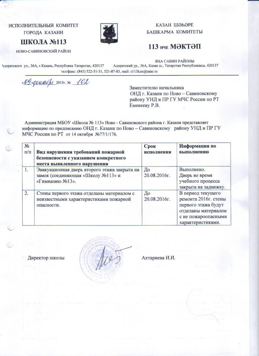 Предписание №77/1/176 от 16.10.2015 пож. без-ть