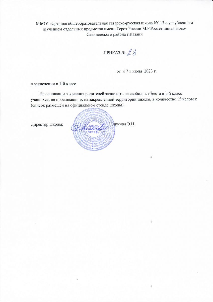 - для детей, не проживающих на закрепленной за школой территории (зачисляются на свободные места) – с 6 июля по 5 сентября 2023 года.