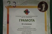 Поздравляем учащихся 4 класса с успешным выступлением в открытом турнире математических игр им. П. А. Широкого.Молодцы, ребята!Так держать!Благодарим учителей за подготовку!