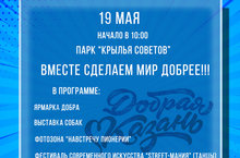 19 мая в парке Крыльев Советов пройдет акция "Вместе сделаем мир добрее!"