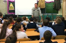 17 декабря, в рамках собрания исторического направления школьного научного общества, приуроченного к 75-летнему юбилею битвы под Москвой, а также памятному Дню Неизвестного Солдата, прошла встреча с участником военно-исторического клуба "Звезда" Сергеем Потаповым. Он осветил для ребят вопросы проведения Поиска павших солдат, на местах боёв Великой Отечественной войны, рассказал о целях и задачах, истории поискового движения в нашей стране, о методах работы поисковых отрядов, о результатах последних поисковых экспедиций отряда "Звезда" в Волгоградскую область, об общественном движении военно-исторической реконструкции. Также ребятам была предоставлена возможность прикоснуться к военным реликвиям из собрания Алексеевского военно-исторического клуба: макеты стрелкового оружия времён войны, макеты боеприпасов, снаряжение, форма и головные уборы бойцов Красной Армии. Лекция сопровождалась многочисленными вопросами учеников, поэтому встреча получилась содержательной и вместо обычного урока продолжалась 1 час 40 минут. Надеемся, что такие мероприятия принесут много пользы в популяризации славного боевого прошлого нашего Отечества среди подрастающего поколения и будут стимулом к изучению истории Великой Отечественной войны. -