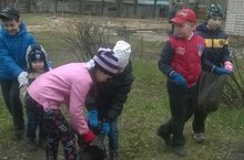 Ученики 1Б класса приняли участие на городском субботнике. Родители помогли в уборке закрепленных участков.
