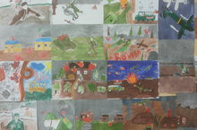 На уроке ИЗО ребята 4 А класса рисовали на тему: "Война глазами детей". Затем была организована выставка детских работ.