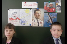 12 апреля - День Космонавтики. Учащиеся 3Б класса вспомнили о первом космонавте Ю. А. Гагарине.