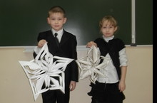 Ученики 2 Б класса изготовили большие снежинки для украшения класса и школы.