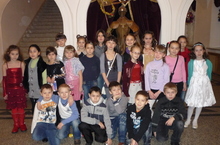 В актовом зале нашей школы прошла новогодняя ёлка.Ребятам 1 Б класса понравилось новогоднее представление.Они водили хоровод,пели песни,читали стихи.