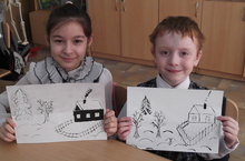 Урок ИЗО в 1А классе "Чёрным по белому"