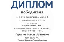 Поздравляем победителя предметной олимпиады WinKid Гарипова Наиля(науч.рук. Бурганова Т.Н.) по обществознанию. Так держать ???????? Успехов и будущих побед!