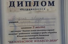 Бондина Мария, ученица 5В класса(кл.рук. Муталлапова Г.Р.), заняла 2 место в районном конкурсе «Безопасное колесо». Молодец!