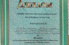 Глебова Ирина Анатольевна-3 место на республиканской научно-практической конференции учащихся им.Д.В. Вилькеева