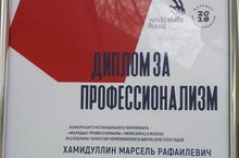 Ученик нашей школы Хамидуллин Марсель (10А) получил диплом за профессионализм на чемпионате мира по профессиональному мастерству World Skills в номинации "Инженерный дизайн CAD" . Умница!