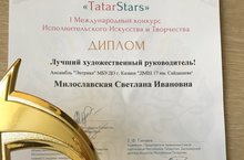Поздравляем ансамбль "Энтрика" - лауреата I степени I Международного конкурса Исполнительского Искусства и Творчества "TatarStars". Руководитель коллектива - Милославская С.И. награждена дипломом "Лучший художественный руководитель". Браво!