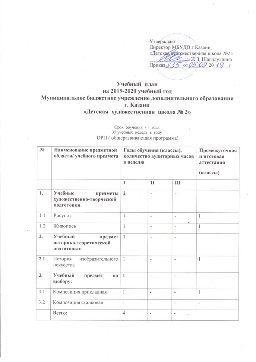 Учебный план по ФГТ на 2019-2020 уч.год.