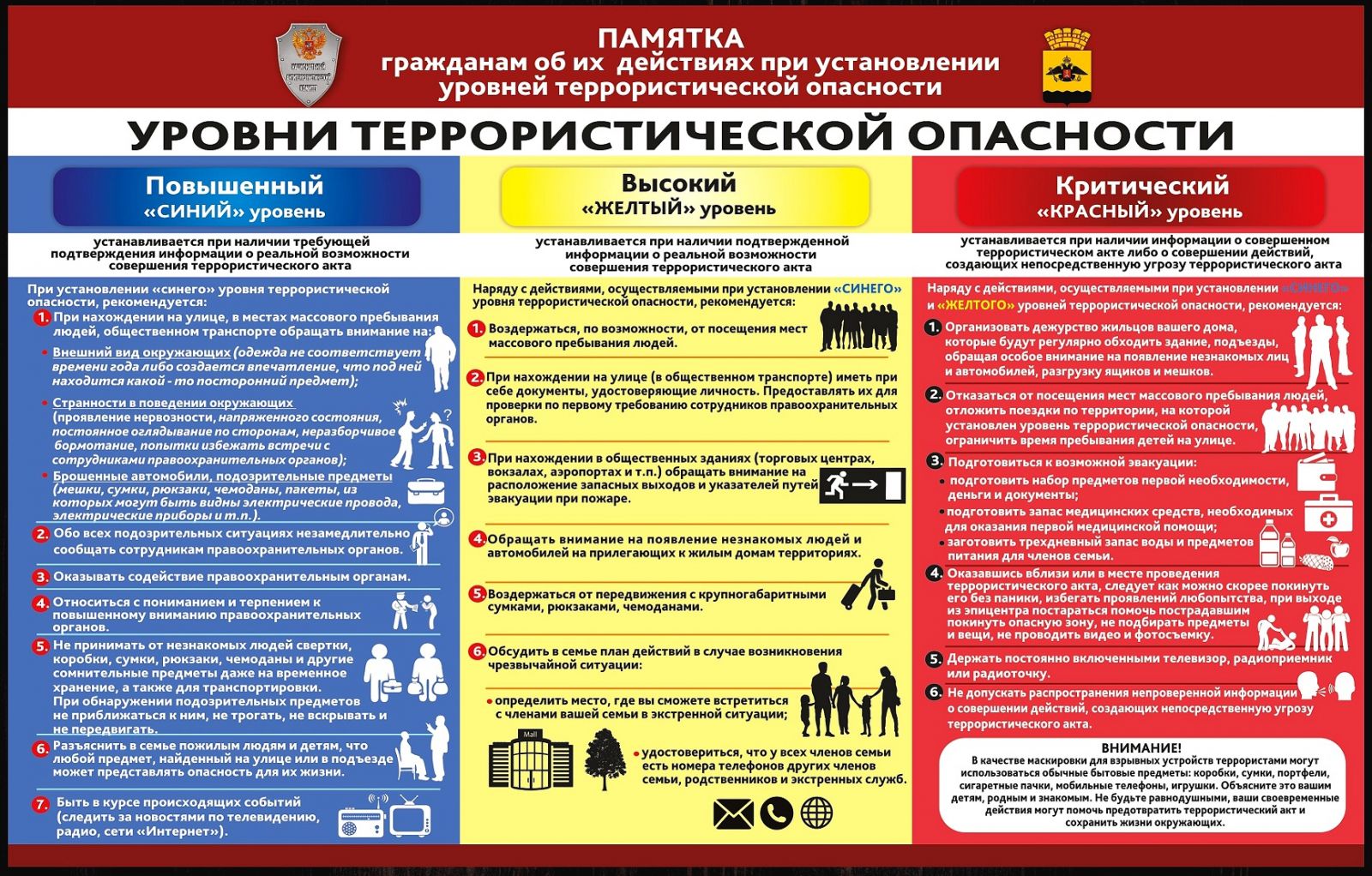 Памятка гражданам о действиях при установлении уровней террористической безопасности