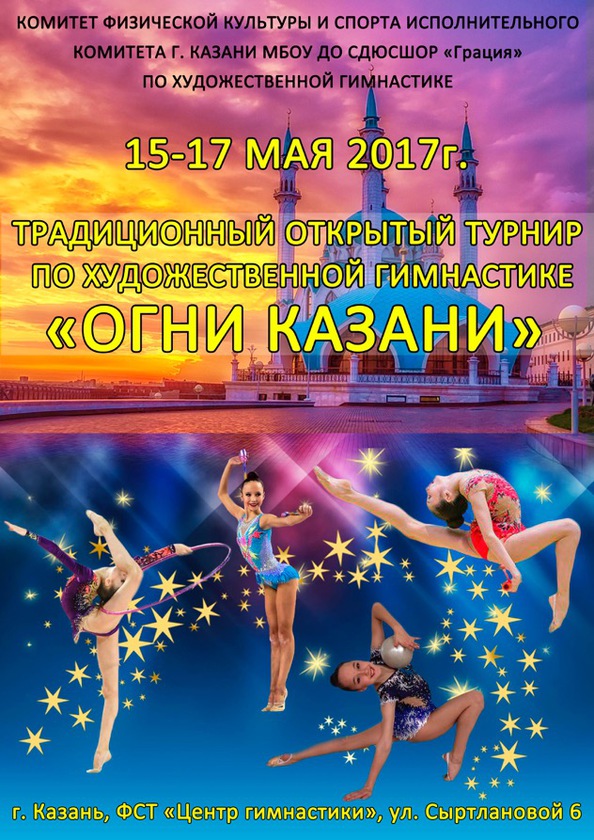 15 - 17 мая 2017г. состоится традиционный открытый турнир по художественной гимнастике "Огни Казани" (ФСТ "Центр гимнастики, г. Казань)