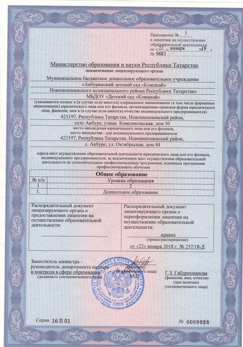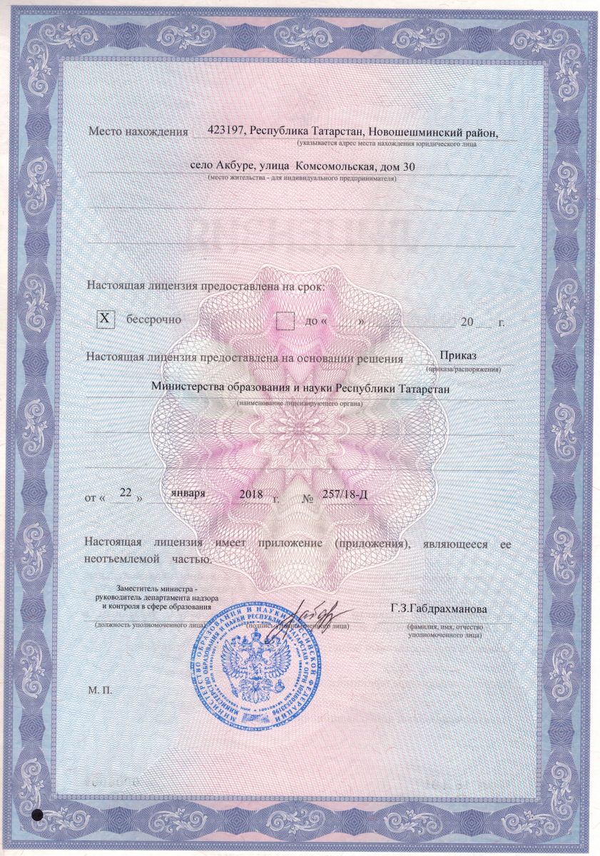 | Адрес: | 423197, Республика Татарстан, Новошешминский район, с. Акбуре, ул.Комсомольская , д.30 |