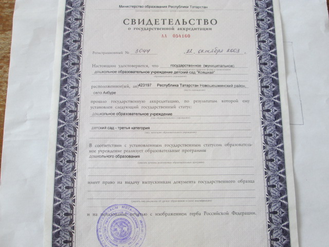 Свидетельство о государственной аккредитации