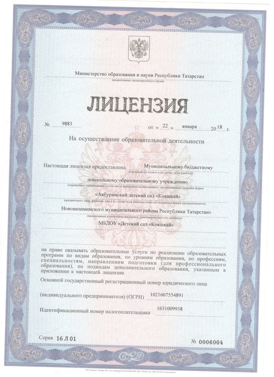 | Короткое название: | МБДОУ "Акбуринский детский сад "Кояшкай" Новошешминского муниципального района РТ" |