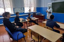 Сегодня работник ФАПа Зарипова Н.Г провела беседу в школе на тему полового воспитания подростков./Бүген ФАП хезмәткәре Зарипова Н.Г.мәктәптә яшүсмерләргә җенси тәрбия бирү темасына әңгәмә үткәрде.