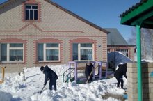 Детишки ускоряют процесс таяния снега. Труд в природе 16.04.2021