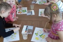 Сегодня на занятии воспитанники нетрадиционным спсобом, рисовали воробушка на ветке - изображение заваркой.