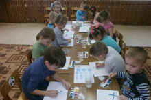 6 декабря на художественном творчестве, ребята рисовали красками «Большие и маленькие ели». В ходе занятия, они учились располагать изображения на широкой полосе(расположение близких и дальних деревьев ниже и выше по листу). Дети беседовали о различии по высоте старых и молодых деревьев, их окраса и характерном строении (старые ели темнее, молодые – светлее). Рисование детям понравилось и они с удовольствием разместили свои рисунки в уголке творчества.