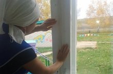 20 октября 2016 года сотрудники детского сада приступили к утеплению окон к зиме.