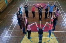 Закончилась акция флешмопом в форме сердца учащимися старших классов.