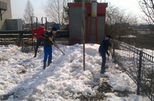 Сегодня в нашей школе прошёл очередной средник по уборке территории школы.