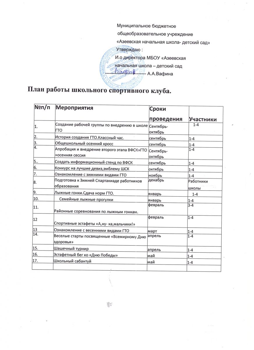 план работы школьного спортивного клуба
