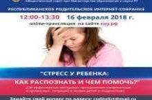16 февраля состоится четвертое заседание Республиканского родительского интернет-собрания, посвященное вопросу "Стресс у ребенка: как распознать и чем помочь?" (Об эффективных методиках преодоления конфликтных и кризисных ситуаций в жизни детей и подростков). В процессе трансляции слушатели смогут получить ответы на заранее присланные вопросы и квалифицированные советы специалистов. Вопросы принимаются с помощью формы на сайте и по адресу электронной почты roditelirt@mail.ru