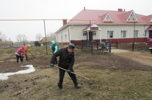 Сегодня не смотря на плохую погоду, сотрудники детского сада "Березка" вышли на средник по уборке территории.