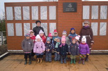 Готовясь к запланированному занятию "Вечный огонь" посвященный 70-летию Великой Победы дети вместе с воспитателями отправились к памятнику погибших воинов расположенному в центре села Слобода Черемуховая.