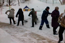 Наш коллектив, на субботнике по очистке снега на территории ДОУ 23.01.2016