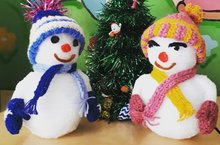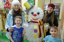 Вот такого красивого снеговика, сделали из бросового материала, пластиковых стаканчиков, мама Артема - Анастасия Александровна и мама Артура -Ирина Владимировна. Просто загляденье.