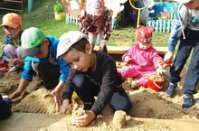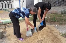 Детки очень обрадовались, что привезли песок. Они тут же стали строить башни и делать окопы.