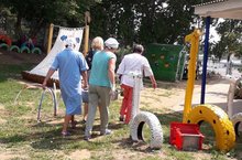 В детском саду работа в самом разгаре. Силами сотрудников ДОУ и родителями, проведена работа по благоустройству территории и покраске оборудования ДОУ.