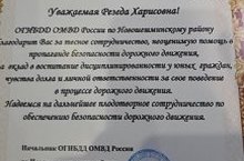 Благодарность от ОГИБДД ОМВД России по Новошешминскому району. 19.04.2019