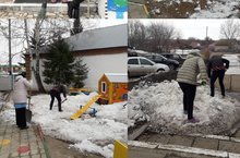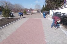 Весенние работы в разгаре. Побелка бардюр, деревьев на территории МБДОУ,