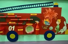 Уголок по пожарной безопасности смастерили воспитатели ДОУ на «День безопасности», направлен на закрепление знаний детей по безопасному поведению дома и на улице. Занятие проводится в виде виртуальной экскурсии на автобусе. Воспитатель вместе с детьми обсуждает различные жизненные ситуации, которые могут привести к трагическим последствиям. Дети с удовольствием отвечают на вопросы и принимают участие в выполнении заданий.