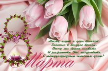 С Международным женским днем 8 Марта!! 08.03.2018 Замечательные мамы наших дорогих детей, поздравляем вас с 8 Марта. Вы — мамы самых чудесных деток на свете, и мы каждый день чувствуем себя счастливыми и жизнерадостными рядом с ними. Желаем мамам доброго терпения, семейного благополучия, искренних чувств любви и нежности, крепких объятий и сладких поцелуев любимых крох, светлой удачи и прекрасного настроения на каждый день.