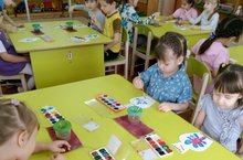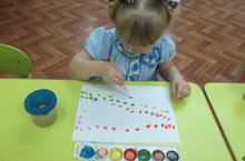 Вера Михайловна, развивает в ребенке художественные умения и навыки по принципу от простого к сложному. Учит правильно держать кисть способом примакивания, закрепляет основные цвета, воспитывает аккуратность, усидчивость, интерес к рисованию.