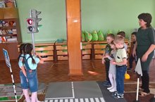 Рамиля Хасановна с детьми, повторяют правила дорожного движения на практике.