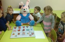 Перед воспитателем Сулеймановой Р.Х., стояла задача: Уточнить представление о зайце, его внешнем виде и частей тела. Обогащение и активизация словарного запаса. Развивать двигательные навыки детей под музыку согласно текста. Закреплять умение лепить из пластилина морковь. Прививать бережное отношение к окружающему миру. Создать эмоциональный положительный отклик у детей от встречи с игрушечным зайцем.
