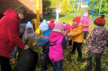 Коллектив детского сада вышел на очистку территории ДОУ от листьев и мусора.