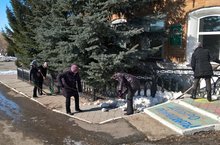 Субботник по очистке снега на территории и вокруг елок. 25.03.2017