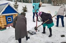 Очистка детской спортплощадки от снега.
